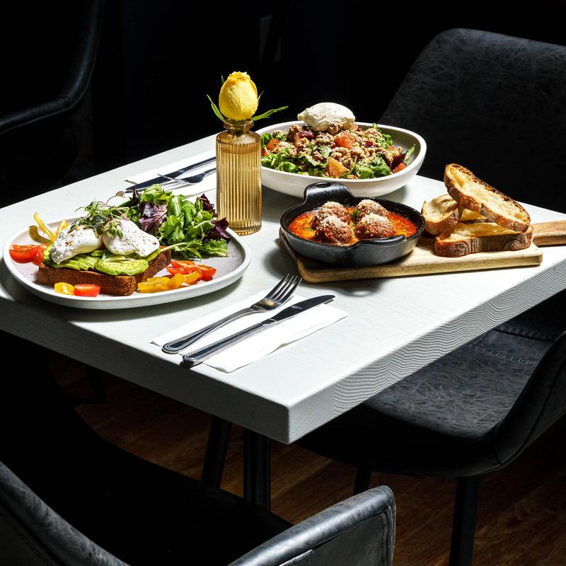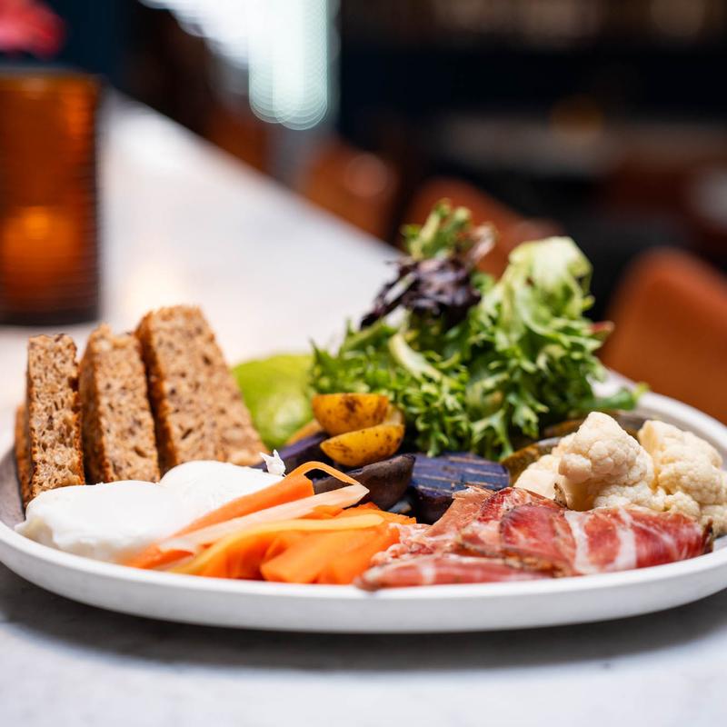 Up front, shop our curated provisions store with local and international cheeses, coffee, wine, beer, and gourmet pantry staples. In the back, relax in our stylish bar with rotating taps, a killer wine list, and a menu built for grazing and gathering.